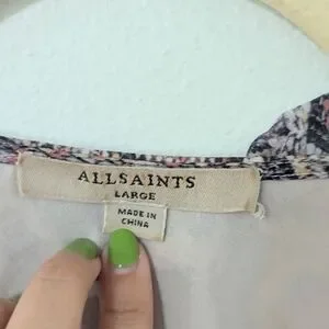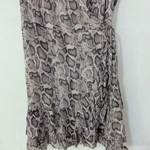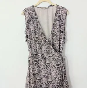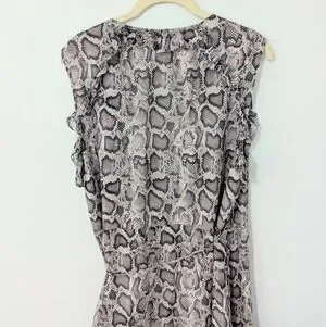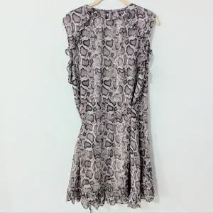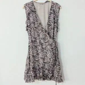 Allsaints Priya Snake Print Ruffle Pring Wrap Mini Dress Sleeveless Beige Large