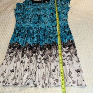 Julian Taylor New York women midi dress , size 18, ombré floral design, short sleeve, A-line, knee length, very stretchy, blue, black brown cream