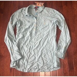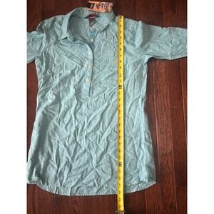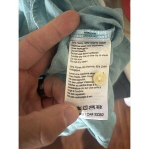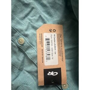 The NWT Outdoor Research Top is a stylish and versatile popover tunic in a vibrant coralie green color. Made from a blend of hemp and cotton, this top features a classic/fitted long sleeve design, collared neckline, and pullover closure for easy wear. Perfect for casual occasions, it is machine washable and lightweight, making it ideal for all seasons. The tunic's modern yet outdoor-inspired style is accentuated by a button detail and is part of the brand's collection, catering to women looking for a comfortable and fashionable top for various settings.