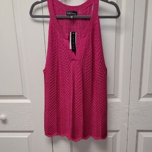 NWT Premise Fuchsia Pink Sleeveless Crochet Sweater & Scallop Bottom Y2K XL