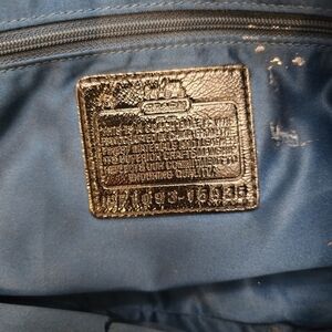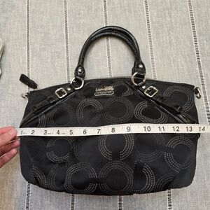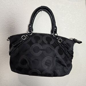Chic Coach satchel with signature pattern. Sleek black design. Perfect for everyday elegance.