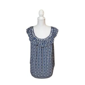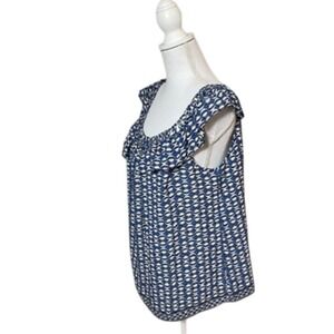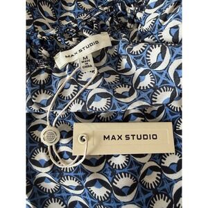 Max Studio Women's Blue Cap Sleeve Braided Ruffle Trim Neck Top NWT Size M
