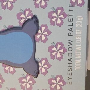 Charming eyeshadow palette featuring Stitch with a floral design. Perfect for fans and makeup lovers.