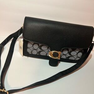 Elegant black and gray crossbody bag with a stylish design. Perfect for any occasion.
