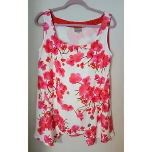 Niche Nilgun Derman Square Neck Sleevless Red Floral Viscose Lagenlook Top M