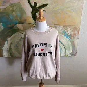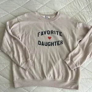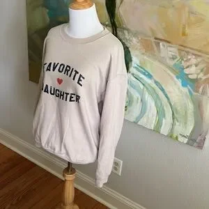 Cozy sweatshirt with 'Favorite Daughter' text. Features a heart design. Worn once. Super soft! RARE!