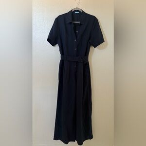 J. McLaughlin Eilidh Linen Blend Navy Blue Jumpsuit size 14