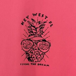 Bright pink long sleeve tee. Features a stylish graphic on the chest. Comfortable and casual design.