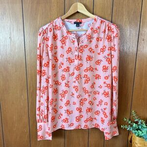 Ann Taylor Pink Floral Button Front Blouse Long Sleeve Shirt Women Medium Preppy