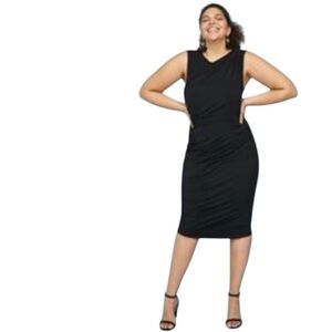 LANE BRYANT Ruched Sheath Dress Black w Built In Smoothing Slip Sz 24 NWT