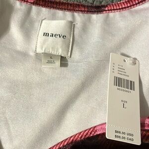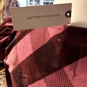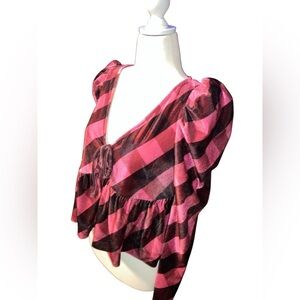 Maeve Pink and Brown Velvet Plaid Ruffled Tie Front Babydoll Blouse L