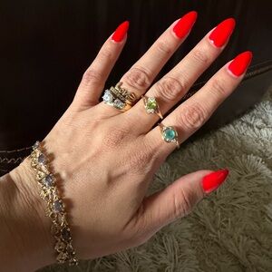 This exquisite ring features a stunning green gemstone set in a luxurious gold band. Perfect for adding a touch of elegance to any outfit.