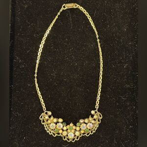 VTG Florenza Emerald Green Aurora Borealis Gold Tone Floral Necklace
