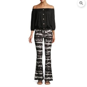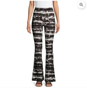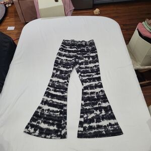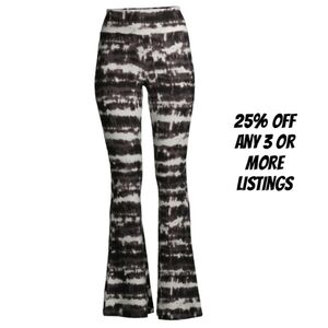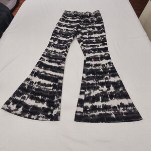 No Boundaries XL Black Cream Tie-Dye Flare Pants Striped Stretch Boho Wide Leg