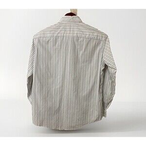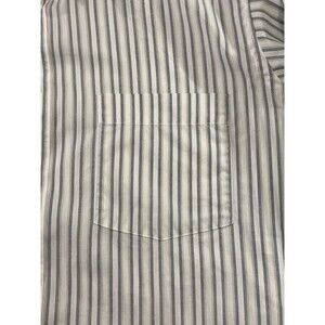 This Christian Dior Monsieur mens size 16 (Medium) shirt features a refined blue and gray stripe pattern with a classic button-up front, long sleeves, and a chest pocket for a polished, preppy look. Perfect for office wear, church, or a night out, it offers timeless luxury and dependable comfort. A sophisticated wardrobe staple from a designer known for elegance and quality.