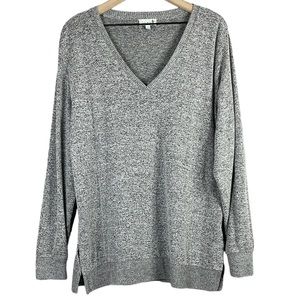 Lucky Brand Women’s Gray Marled Pullover VNeck Split Hem Knit Sweater Size Large