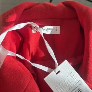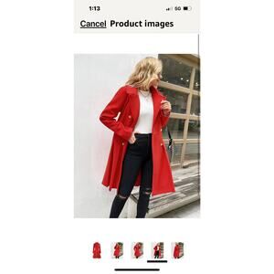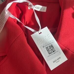 GRACE KARIN Women Lapel Double-Breasted Trench Coat Jacket Teal Red XL / New!!