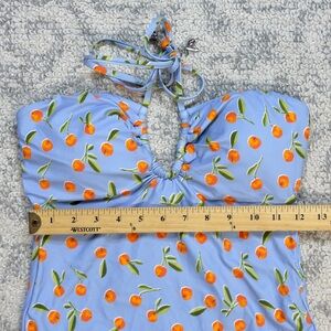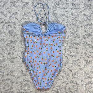 Seafolly Bandeau One Piece Halter Blue w/ Orange Print Size 8 Summer Crush NWT