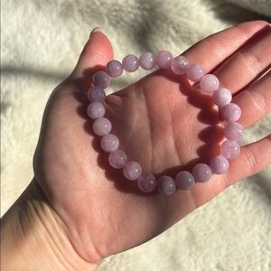Slip into crystal-core serenity with this Kunzite beaded bracelet, featuring 8mm polished beads in a soft lavender-pink hue, measuring 7.5 inches in length. In great condition, this piece radiates gentle energy, making it perfect for your mindfulness edits, spring capsule, or dreamy adornment stack.
