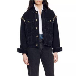 Sandro Paloma Embellished Faded Denim Jacket - Size 38 (6 US)