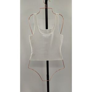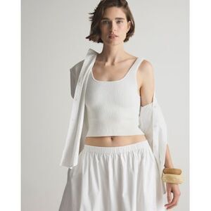 Quince Women Cropped Square Neck Ribbed Knit Tank White Sleeved Top M