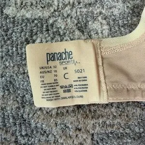 Panache sports bra 32C, like new. Color is beige. This is an excellent high impact sports bra that has an underwire, a triple hook and eye clasp in the back and adjustable comfort straps.