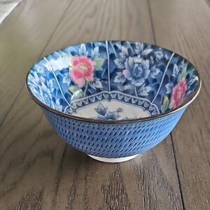 Beautiful porcelain bowl with blue floral design and pink accents. Being a soup/rice bowl. I believe from the 1990s. It's gorgeous and would make a nice decor piece for your home. In great condition with no chips or cracks. Refer to photos.