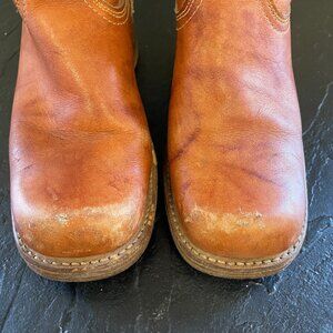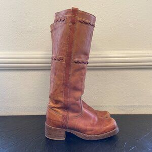 Vintage 70s Leather Square Toe Campus Boots Brown Tan Braided | Size 5.5