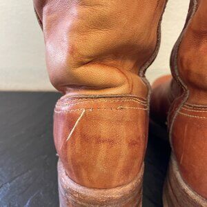 Details- This is a pair of gorgeous 70s era light, bright brown (tan) square toe campus boots. Stacked heel with braided detail. Perfectly worn in! Made in the USA but are unbranded as far as logo goes.