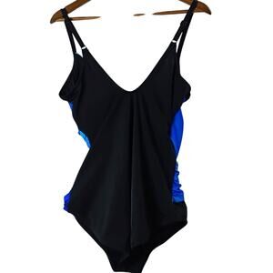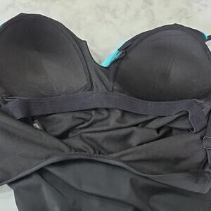 Embrace Your Curves Miracle Brand Sz 1X Black Turquoise Ruching Makenna Swimsuit