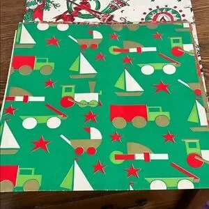 Set of colorful vintage Christmas wrapping papers featuring Santa and holiday designs. Perfect for gift wrapping DIY and up cycling. special Christmas nostalgia. Each piece is 20x28 a little fragile but ready to make your holiday festive