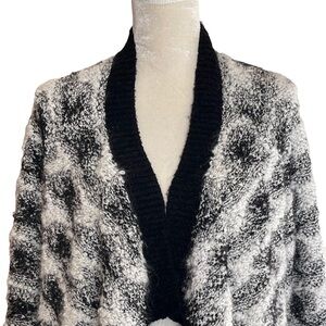 Lou & Grey Women’s Snowbound Open Front Mohair Cardigan Size M Black White