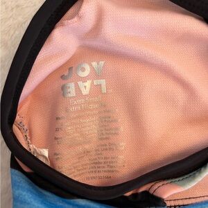 Stylish halter top with vibrant colors. Features black trim. Ideal for casual outings.