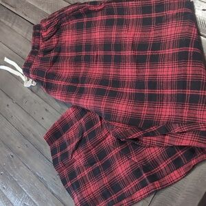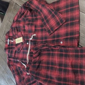 These cozy red plaid pajamas are perfect for a comfortable night's sleep. Made with soft fabric, they ensure warmth and comfort. Ideal for bedtime or lounging around the house.
