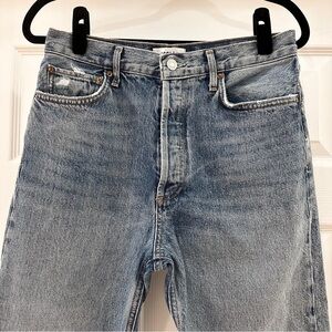 Agolde 90s Pinch high rise, Straight Cropped Raw Hem Rigid Denim Jeans. Size 28. Excellent condition. No stretch. Button fly.