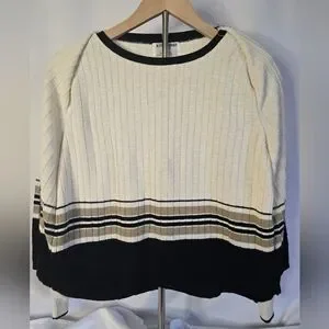 Retro Alfred Dunner Beige & Black Striped Pullover Sweater Top | Size M