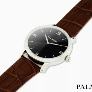 Palermo Rowen Mens Watch Brown Leather embossed Band 72 1 mm Moissanite gemstone bezel Luxury Watch