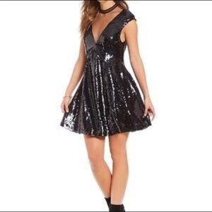 Free People Womens Sequined & Mesh Illusion Fit & Flare Dress NWT