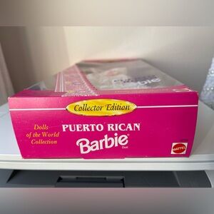 Puerto Rican Barbie Doll dressed in white dress with pink accents. Part of the Dolls of the World Collection.