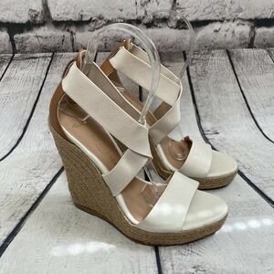 Jean Michel Cazabat Ivory Leather Textile Espadrille Wedge Sandals Size 6.5