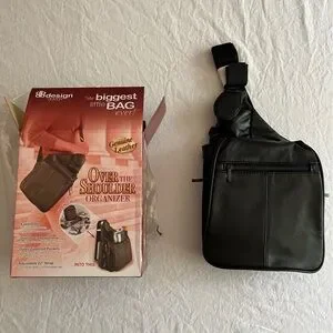 Buxton Black Leather Crossbody Unisex Over the Shoulder Organizer Bag NIB