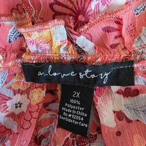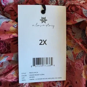 NEW Women Plus 2X Chiffon Pink Floral Relax Fit Blouse Gold Sparkle A Love Story