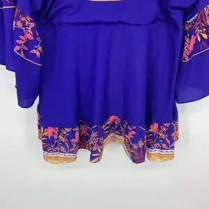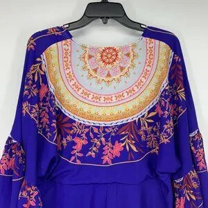 Umgee Top Womens Size Small Blue V Neck Bell Sleeve Boho Medallion Printed. Great pre-owned condition, one light thread run on one sleeve (see photo).
