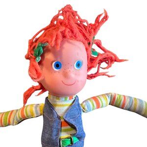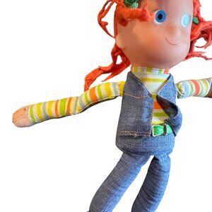 This vintage 1973 Mattel Jibby Jeaner doll is a charming collectible with a retro denim outfit, vibrant yarn hair, and striped shirt. An authentic piece for vintage toy enthusiasts.