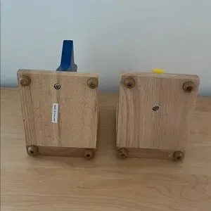 Wooden bookends featuring a blue star and yellow moon. Perfect for adding a whimsical touch. In good condition. Purchased at Crate and Barrel’s in the 1990’s.