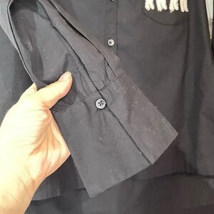 Maeve Black Button Down Shirt Top w/Dog Pet Appliqué, Size XXS NWT