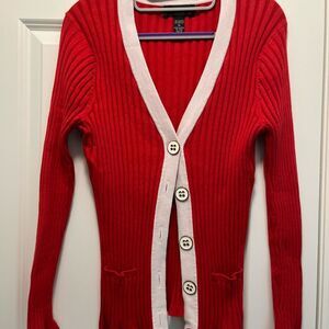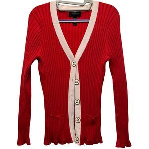 Cable & Gauge Cardigan Sweater X-Large Red/White EUC Lots of Stretch