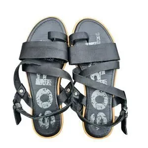 Sorel Ella Criss Cross Black Leather Strappy Sandal