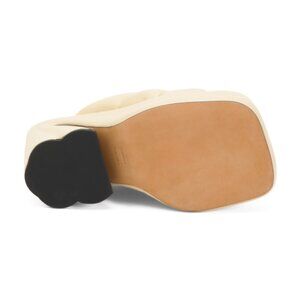 Elevated and sculptural, the Proenza Schouler Arc Platform Mules feature a modern padded upper and bold curved wedge heel. Crafted in smooth cream leather, this slip-on silhouette includes a square open toe, a sturdy platform base, and the brand’s signature minimalist aesthetic.