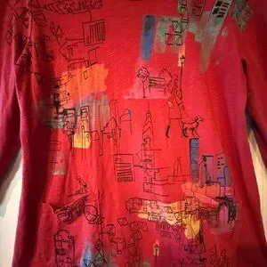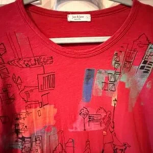 JESS & JANE Artistic Red Cotton Long Sleeve Top, L
